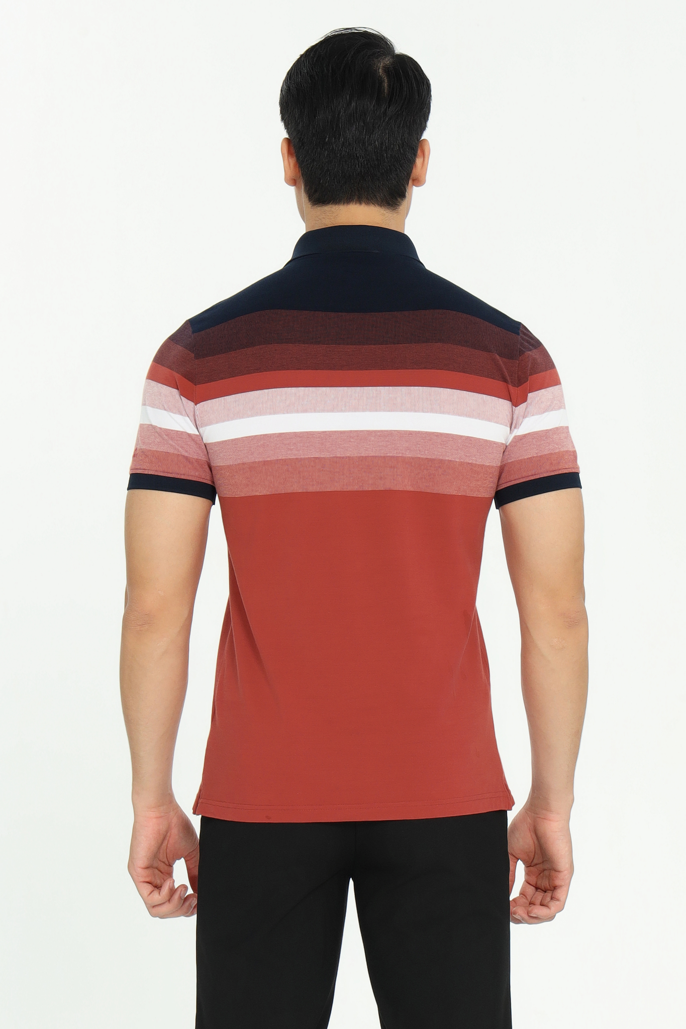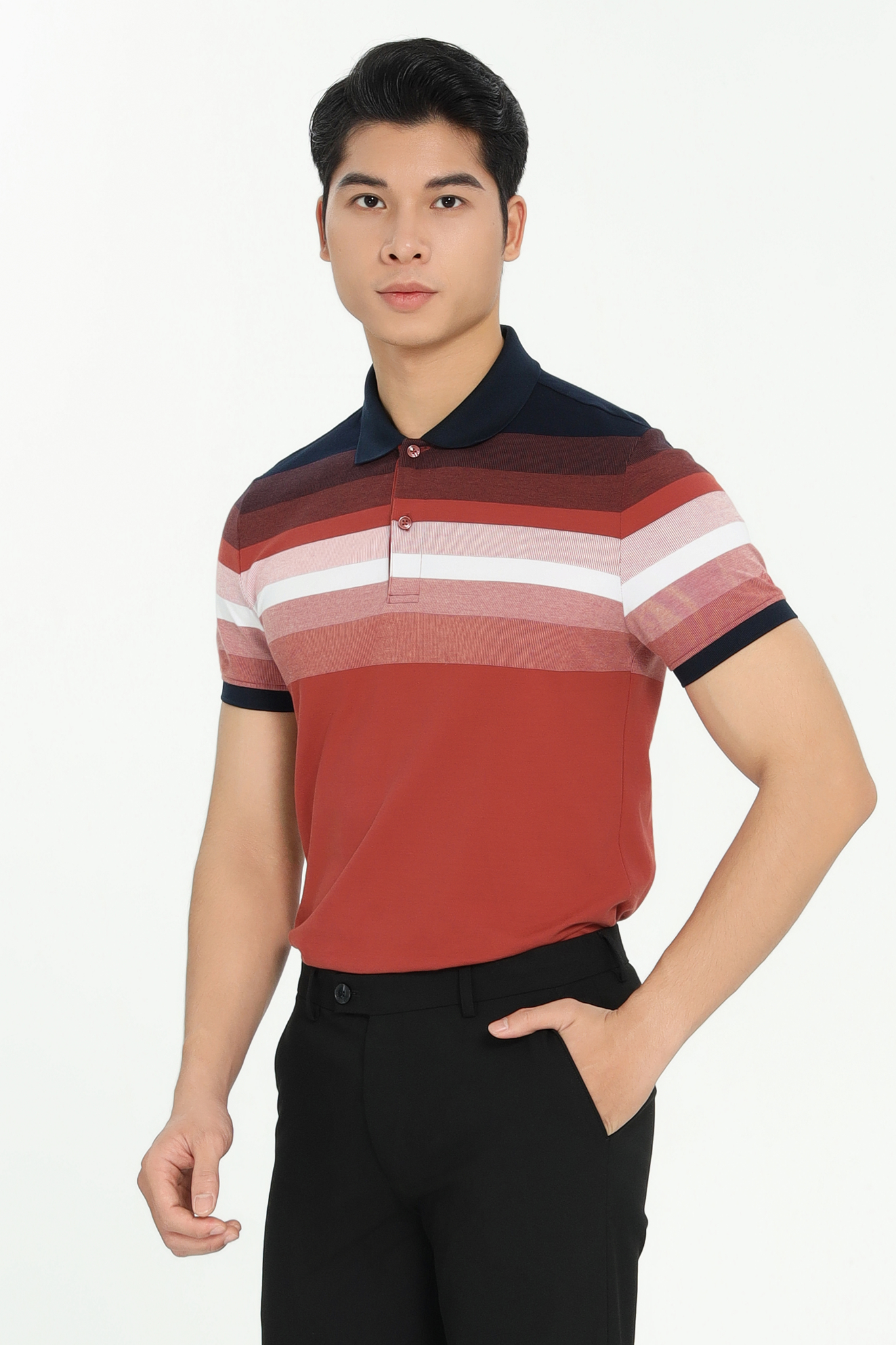- Áo polo phom ôm gọn cơ thể, hiệu ứng kẻ chuyển màu tinh tế và độc đáo.