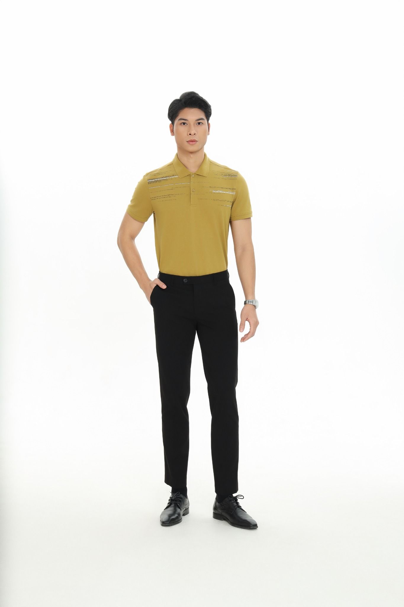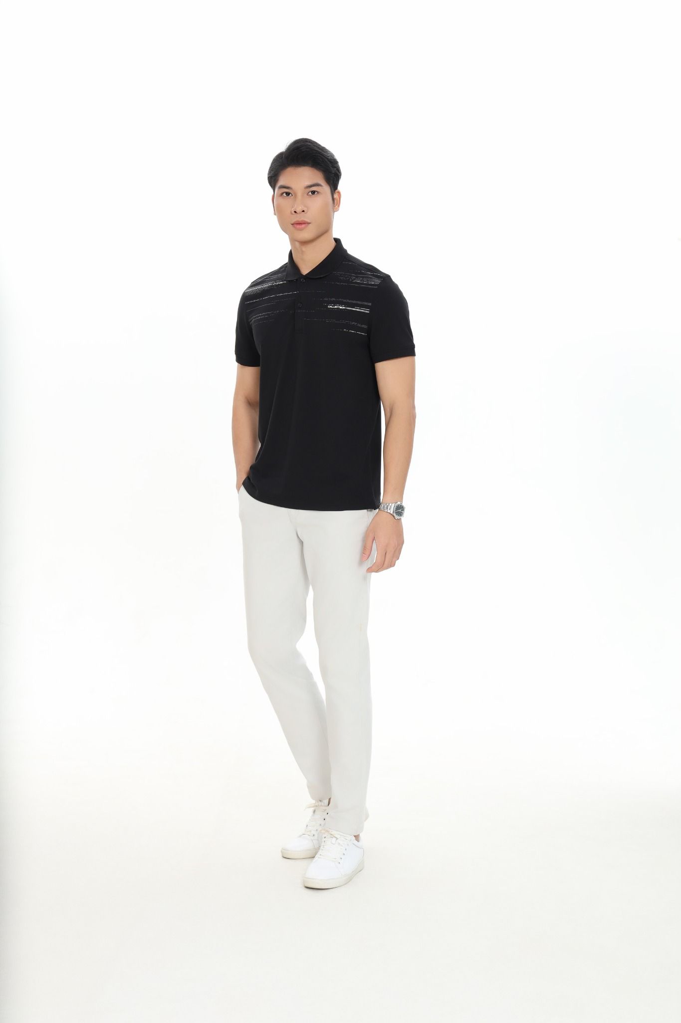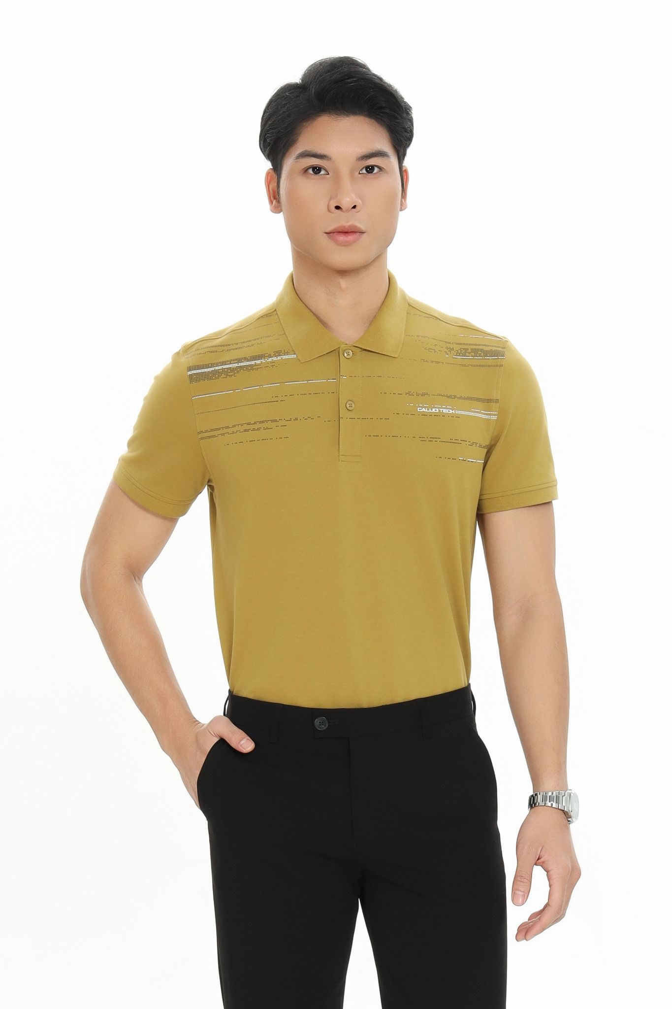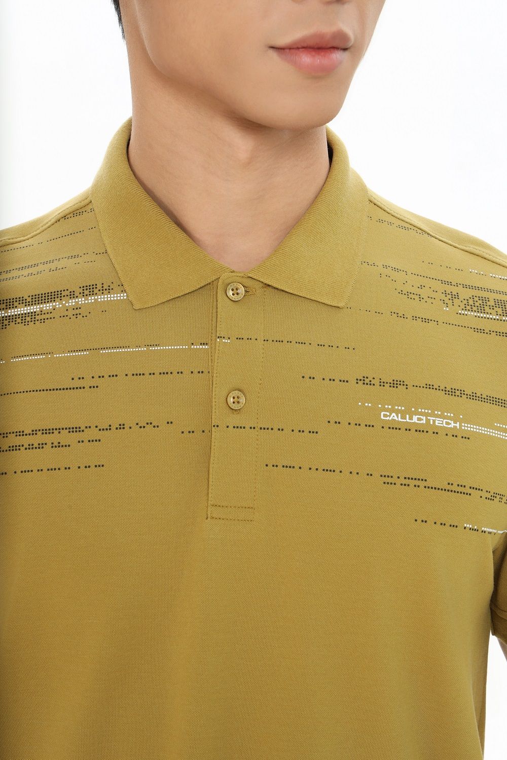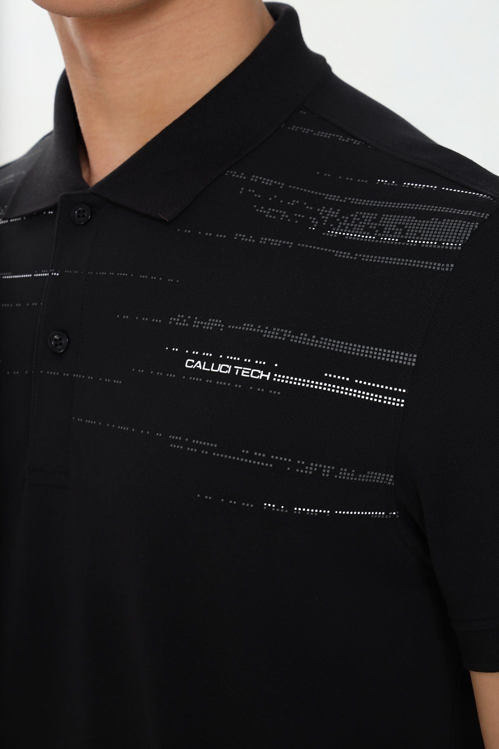Áo Polo phom suông vừa, chất liệu sợi tổng hợp cao cấp kết hợp giữa Cotton và sợi Spandex giúp thấm hút mồ hôi vượt trội, tạo cảm giác thoải mái khi vận động. Điểm nhấn đặc biệt mang hơi hướng công nghệ với những ô nhỏ tạo nên dòng chữ CALUCI TECH.