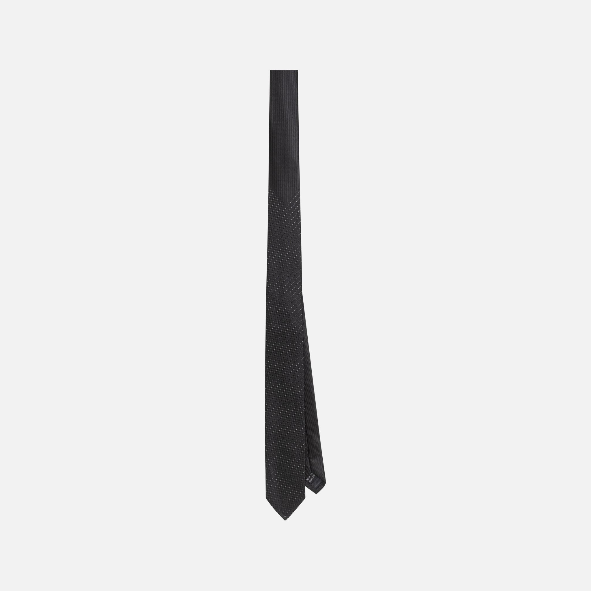- Cà vạt nam bản trung dệt jacquard họa tiết chấm bi trên nền màu đen trung tính, mang đến vẻ ngoài vừa cổ điển vừa thời trang.